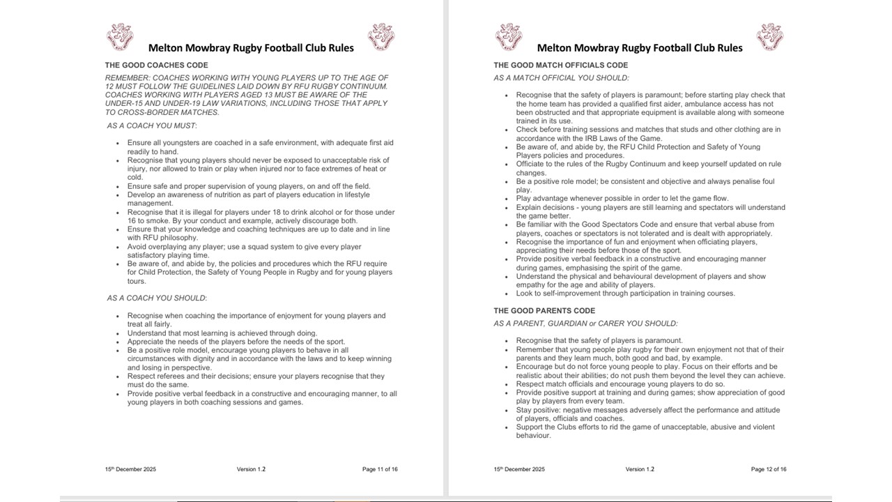 - Codes of Conduct - Mini Juniors